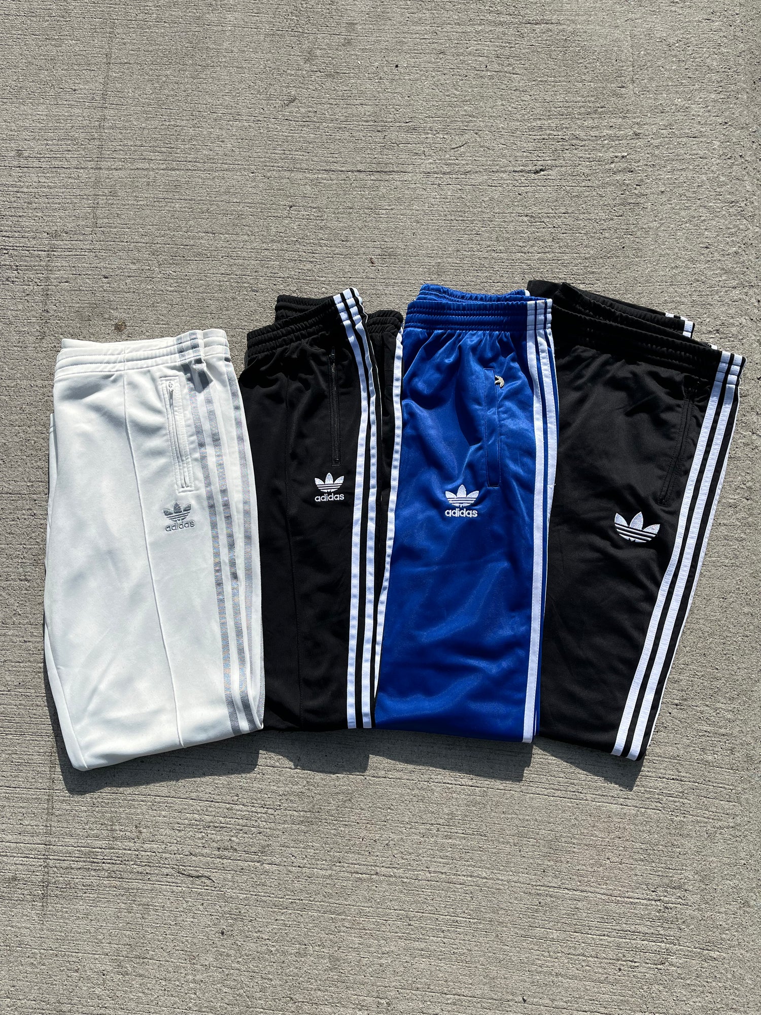 Passen zu unserem Bestseller "Adidas Jacken" kommen jetzt Adidas Track Pants. Die Jacken waren schnell ausverkauft und bei den Hosen erwarten wir auch großes Interesse. Seid schnell und pünkltich auf der Seite.